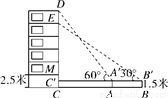 如图,某数学兴趣小组要测量一栋五层居民楼CD的高度.该楼底层为车库,高2.5米;上面五层居住,每层高度相等.测角仪支架离地1.5米,在A处测得五楼顶部点D的仰角为60°,在B处测得四楼顶部点E的仰角为30°,AB=14米.求居民楼的高度(精确到0.1米,参考数据: