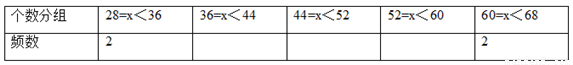 (2)若对这20个数按组距为8进行分组,请补全频数分布表及频数分布直方图: