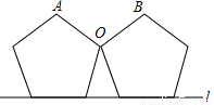 两个完全相同的正五边形都有一边在直线l上,且有一个公共顶点O,其摆放方式如图所示,则∠AOB等于 ______ 度.