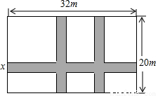 如图,某小区计划在一块长为32m,宽为20m的矩形空地上修建三条同样宽的道路,剩余的空地上种植草坪,使草坪的面积为570m2.若设道路的宽为xm,则下面所列方程正确的是( )