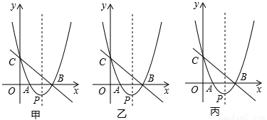 如图甲,直线y=﹣x+3与x轴、y轴分别交于点B、点C,经过B、C两点的抛物线y=x2+bx+c与x轴的另一个交点为A,顶点为P.