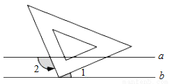 如图,已知a∥b,小华把三角板的直角顶点放在直线b上.若∠1=40°,则∠2的度数为( )