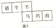 中国讲究五谷丰登,六畜兴旺,如图2是一个正方体展开图,图中的六个正方形内分别标有六畜:“猪”、“牛”、“羊”、“马”、“鸡”、“狗”.将其围成一个正方体后,则与“牛”相对的是( )