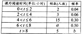为了加强学生课外阅读,开阔视野,某校开展了“书香校园,从我做起”的主题活动.学校随机抽取了部分学生,对他们一周的课外阅读时间进行调查,绘制出频数分布表和频数分布直方图的一部分如下: