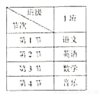 某同学家长应邀安参加孩子就读中学的开放日活动,他打算上午随机听一节孩子所在1班的课,下表是他拿到的当天上午1班的课表,如果每一节课被听的机会均等,那么他听数学课的概率是 .
