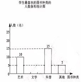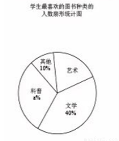 某校为了开展读书月活动,对学生最喜欢的图书种类进行了一次抽样调查,所有图书分成四类:艺术、文学、科普、其他。随机调查了该校