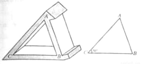 王浩同学用木板制作一个带有卡槽的三角形手机架,如下面左图所示.已知