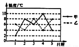 甲、乙两地去年12月前5天的平均气温如图所示,下列描述错误的是( )
