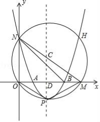 如图所示,在平面直角坐标系中,⊙C经过坐标原点O,且与x轴,y轴分别相交于M(4,0),N(0,3)两点.已知抛物线开口向上,与⊙C交于N,H,P三点,P为抛物线的顶点,抛物线的对称轴经过点C且垂直x轴于点D.