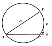 的中点,过点D作DE⊥AC交AC的延长线于点E.