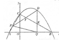 轴交于点C,连接AC、BC.点P沿AC以每秒1个单位长度的速度由点A向点C运动,同时,点Q沿BO以每秒2个单位长度的速度由点B向点O运动,当一个点停止运动时,另一个点也随之停止运动,连接PQ,过点Q作QD⊥x轴,与抛物线交于点D,与BC交于点E.连接PD,与BC交于点F.设点P的运动时间为