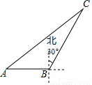 如图,海中一渔船在A处且与小岛C相距70nmile,若该渔船由西向东航行30nmile到达B处,此时测得小岛C位于B的北偏东30°方向上;求该渔船此时与小岛C之间的距离.