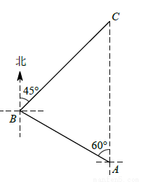 地,再沿北偏东45°方向行驶一段距离到达古镇