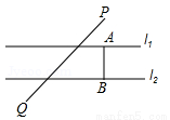 ,在直线l1上有一动点A,直线l2上有一动点B,满足AB⊥l2,且PA+AB+BQ最小,此时PA+BQ= .