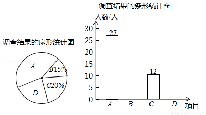 (1)如图,希望参加活动C占20%,希望参加活动B占15%,则被调查的总人数为 人,扇形统计图中,希望参加活动D所占圆心角为 度,根据题中信息补全条形统计图.
