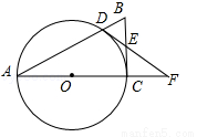 如图,在Rt△ABC中,∠ACB=90°,以AC为直径作⊙O交AB于点D,E为BC的中点,连接DE并延长交AC的延长线于点F.