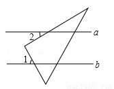 如图,直线a∥b,将一个直角三角尺按如图所示的位置摆放,若∠1=58°,则∠2的度数为( )