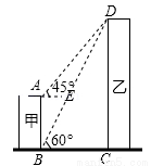 如图,甲、乙为两座建筑物,它们之间的水平距离BC为30m,在A点测得D点的仰角∠EAD为45°,在B点测得D点的仰角∠CBD为60°,求这两座建筑物的高度(结果保留根号)