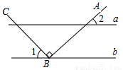如图,a∥b,点B在直线a上,且AB⊥BC,∠1=35°,那么∠2=( )