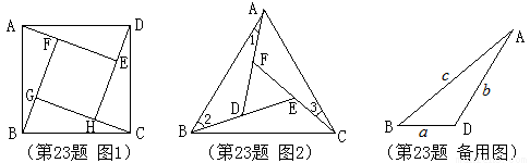 如图2,在正△ABC的内部,作∠BAD=∠CBE=∠ACF,AD,BE,CF两两相交于D,E,F三点(D,E,F三点不重合)。