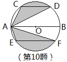 运用图形变化的方法研究下列问题:如图,AB是⊙O的直径,CD,EF是⊙O的弦,且AB∥CD∥EF,AB=10,CD=6,EF=8。则图中阴影部分的面积是