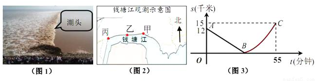 (分钟)的函数关系用图3表示.其中:“11:40时甲地‘交叉潮’的潮头离乙地12千米”记为点