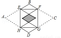如图,矩形EFGH的四个顶点分别在菱形ABCD的四条边上,BE=BF,将△AEH,△CFG分别沿边EH,FG折叠,当重叠部分为菱形且面积是菱形ABCD面积的