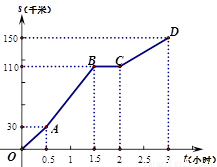 自驾游是当今社会一种重要的旅游方式,五一放假期间小明一家人自驾去灵山游玩,下图描述了小明爸爸驾驶的汽车在一段时间内路程s(千米)与时间t(小时)的函数关系,下列说法中正确的是( )
