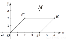如图,在平面直角坐标系xOy中,四边形OABC是平行四边形,且A(4,0)、B(6,2)、M(4,3).在平面内有一条过点M的直线将平行四边形OABC的面积分成相等的两部分,请写出该直线的函数表达式______________________.