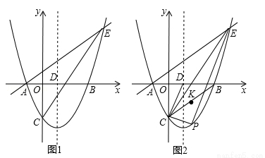 与x轴交于A、B两点(点A在点B的左侧),与y轴交于点C,对称轴与x轴交于点D,点E(4,n)在抛物线上.