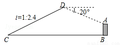 如图,已知点C与某建筑物底端B相距306米(点C与点B在同一水平面上),某同学从点C出发,沿同一剖面的斜坡CD行走195米至坡顶D处,斜坡CD的坡度(或坡比)i=1:2.4,在D处测得该建筑物顶端A的俯视角为20°,则建筑物AB的高度约为(精确到0.1米,参考数据:sin20°≈0.342,cos20°≈0.940,tan20°≈0.364)( )