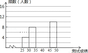 为了提高学生书写汉字的能力,增强保护汉字的意识,我市举办了首届“汉字听写大赛”,经选拔后有50名学生参加决赛,这50名学生同时听写50个汉字,若每正确听写出一个汉字得1分,根据测试成绩绘制出部分频数分布表和部分频数分布直方图如图表: