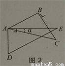 如图,取一副三角板按图1拼接,固定三角板ADE(含30°),将三角板ABC(含45°)绕点A顺时针方向旋转一个大小为α的角(0°<α≤45°),试问: