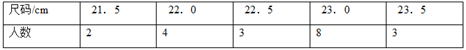 小颖随机抽样调查本校20名女同学所穿运动鞋尺码,并统计如表:( )