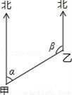 如图,甲、乙两岸之间要架一座桥梁,从甲岸测得桥梁的走向是北偏东50°,如果甲、乙两岸同时开工.要使桥梁准确连接,那么在乙岸施工时,应按β为_____度的方向动工.