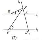 如图,已知直线l1∥l2,l3、l4和l1、l2分别交于点A、B、C、D,点P在直线l3或l4上且不与点A、B、C、D重合.记∠AEP=∠1,∠PFB=∠2,∠EPF=∠3.