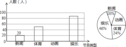 解放中学为了了解学生对新闻、体育、动画、娱乐四类电视节目的喜爱程度,随机抽取了部分学生进行调查(每人限选1项),现将调查结果绘制成如下两幅不完整的统计图,根据图中所给的信息解答下列问题.