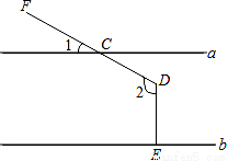 如图,直线a∥b,射线DF与直线a相交于点C,过点D作DE⊥b于点E,已知∠1=25°,求∠2的度数.