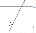 如图,若a∥b,∠1=60°,则∠2的度数为( )