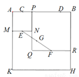 如图,四边形ABHK是边长为6的正方形,点C、D在边AB上,且AC=DB=1,点P是线段CD上的动点,分别以AP、PB为边在线段AB的同侧作正方形AMNP和正方形BRQP,E、F分别为MN、QR的中点,连接EF,设EF的中点为G,则当点P从点C运动到点D时,点G移动的路径长为( )