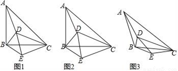 (3)如图3,若AB=BC,DE=EC,且∠ABC=∠DEC=135°,BD=a,AD=b,CD=c,请直接写出a、b、c三者满足的等量关系.