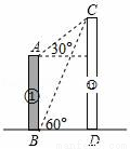 如图,某小区①号楼与⑪号楼隔河相望,李明家住在①号楼,他很想知道⑪号楼的高度,于是他做了一些测量,他先在B点测得C点的仰角为60°,然后到42米高的楼顶A处,测得C点的仰角为30°,请你帮助李明计算⑪号楼的高度CD.