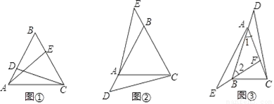 【拓展】如图③,在△ABC中,AB=AC,∠1=∠2,点D、E分别在BA、FB的延长线上,且AD=BE,若AF=