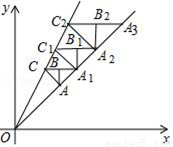 如图,在平面直角坐标系第一象限内,直线y=x与直线y=2x的内部作等腰Rt△ABC,是∠ABC=90°,边BC∥x轴,AB∥y轴,点A(1,1)在直线y=x上,点C在直线y=2x上:CB的延长线交直线y=x于点A1,作等腰Rt△A1B1C1,是∠A1B1C1=90°,B1C1∥x轴,A1B1∥y轴,点C1在直线y=2x上…按此规律,则等腰Rt△AnBnCn的腰长为______.