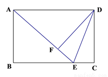 如图,在矩形ABCD中,E是BC边上的点,连接AE、DE,将△DEC沿线段DE翻折,点C恰好落在线段AE上的点F处。若AB=6,BE:EC=4:1,则线段DE的长为_______.