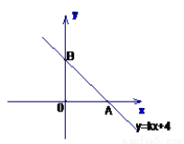 如图,在直角坐标系中,直线y=kx+4与x 轴正半轴交于一点A,与y轴交于点B,已知△OAB的面积为10,求这条直线的解析式。