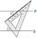 已知直线a∥b,一块直角三角板如图所示放置,若∠1=37°,则∠2的度数是( )