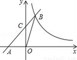 如图,在平面直角坐标系系中,直线y=k1x+2与x轴交于点A,与y轴交于点C,与反比例函数y=