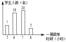 如图,是根据九年级某班50名同学一周的锻炼情况绘制的条形统计图,下面关于该班50名同学一周锻炼时间的说法错误的是( )
