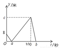 甲、乙两人在直线跑道上同起点、同终点、同方向匀速跑步500米,先到终点的人在原地休息。已知甲先出发2秒,在跑步过程中,甲、乙两人间的距离y(米)与乙出发的时间t(秒)之间的关系如图所示,下列结论中正确的有几个?(1)甲速为每秒4米;(2)乙速为每秒5米;(3)a=8;(4)b=100;(5)c=125 ( )